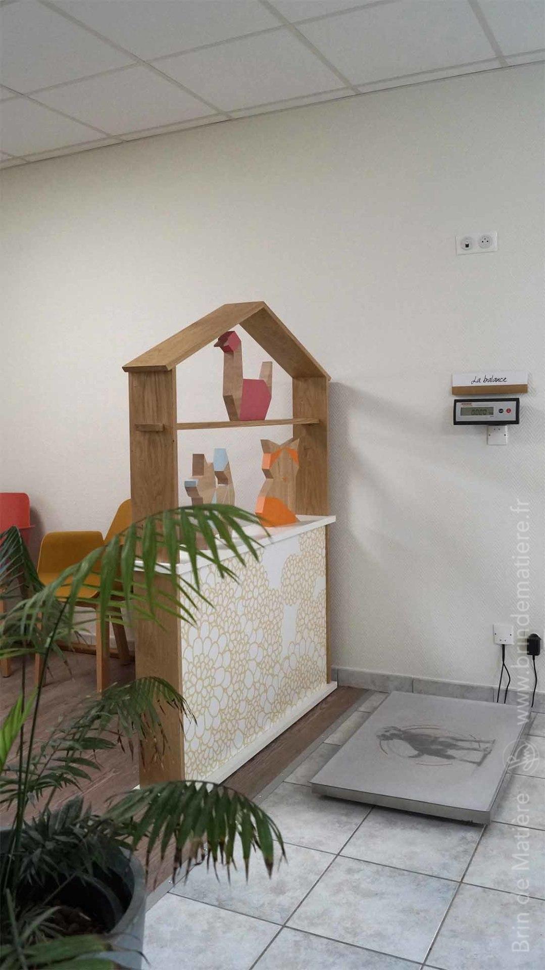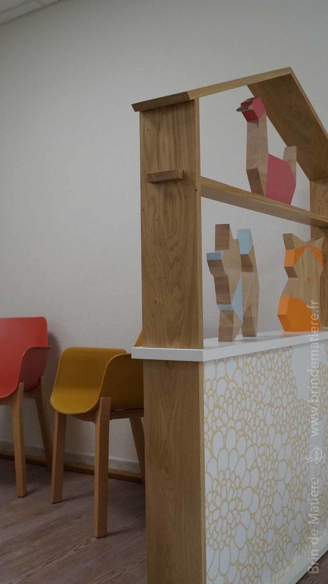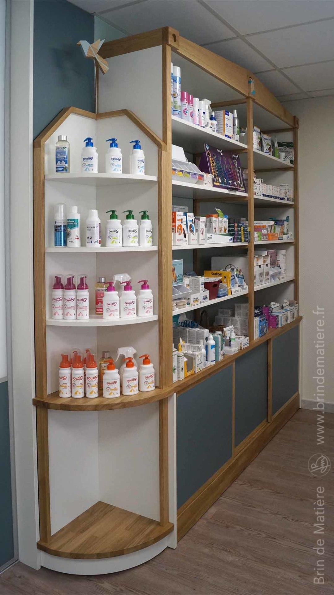 Agencement des espaces attentes, fabrication de mobilier de réception et de l’espace pharmacie, remise aux normes et à neuf des sols, plafonds, murs et éclairages.