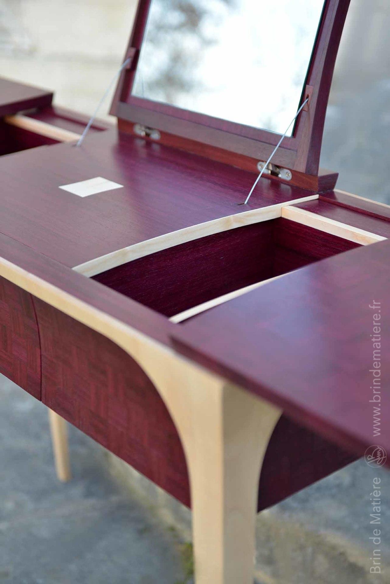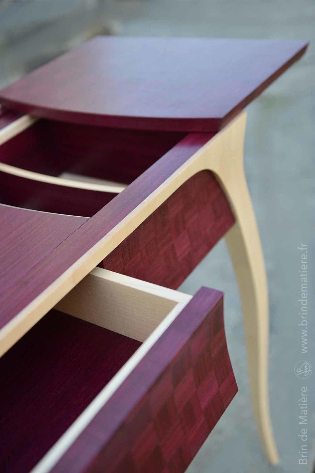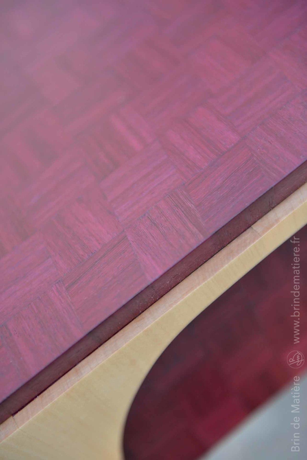 (érable sycomore et amarante de Guyane, tissus brodé)